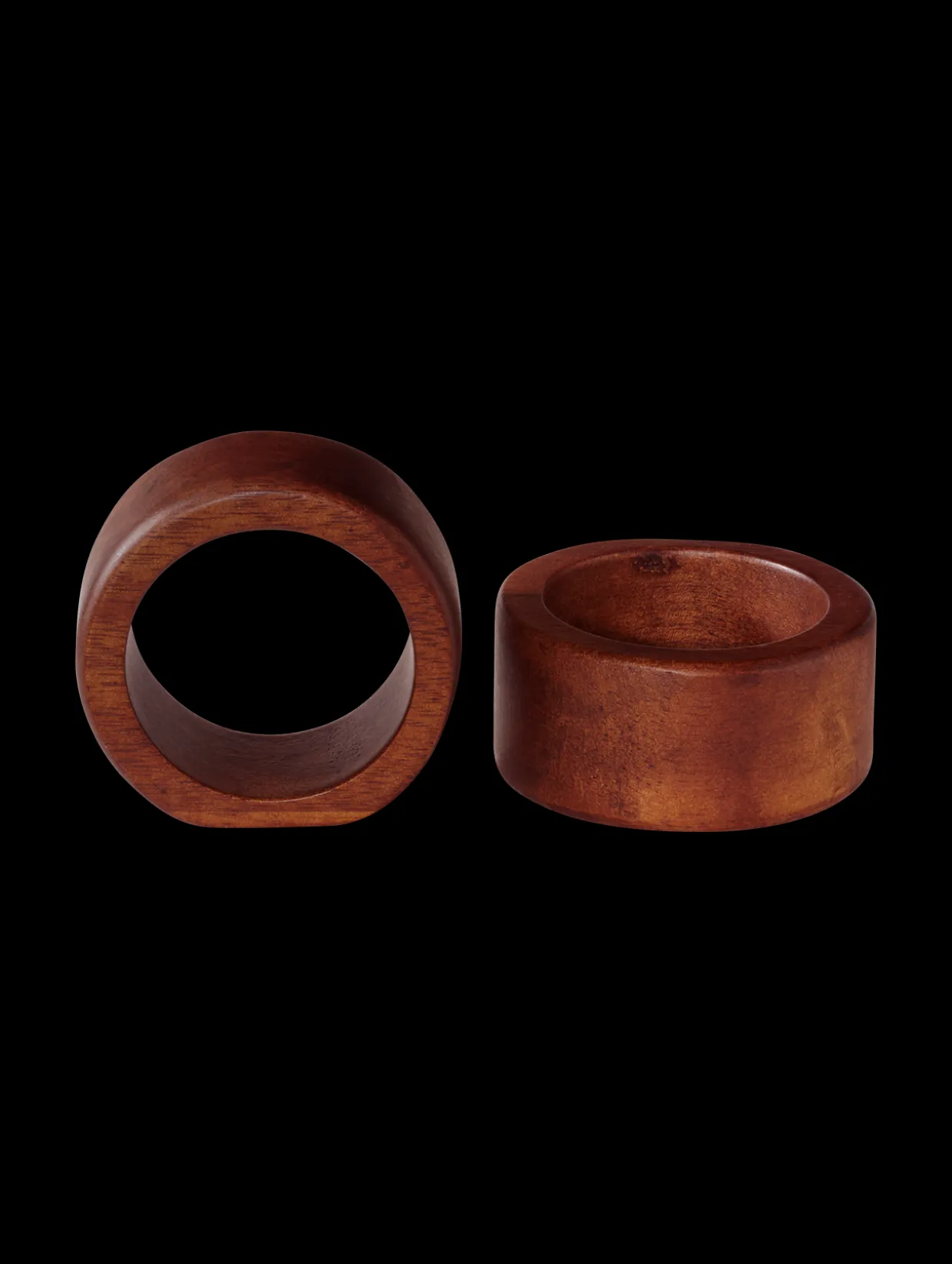 Runde Serviettenringe mit glatter Oberfläche, die aus massivem Akazienholz gefertigt sind. Mit ihrer individuellen Maserung sind sie Hingucker und zugleich echte Handschmeichler.