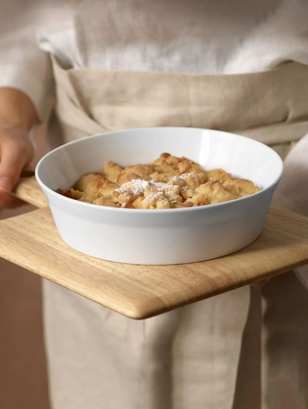 Runde Gratinform mit einem Durchmesser von 20 cm, einer Höhe von 5 cm und einem Fassungsvermögen von 0,7 Litern. Die hochwertige, reinweiße Form ist optimal für die Zubereitung von herzhaften oder süßen Ofengerichten geeignet – Aufläufe, Pasteten, Kuchen, Quiches – mit diesem Allroundtalent ist alles möglich.