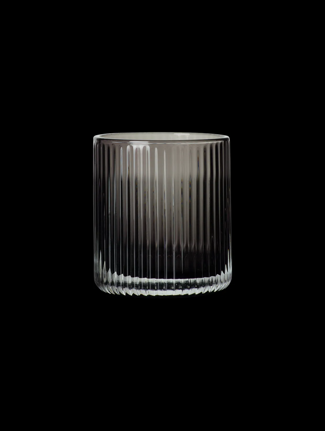 Grauer Tumbler mit gerilltem Oberflächendesign aus der Kollektion Juna. Das mundgeblasene Trinkglas ist durchgefärbt und somit langlebig und spülmaschinengeeignet.