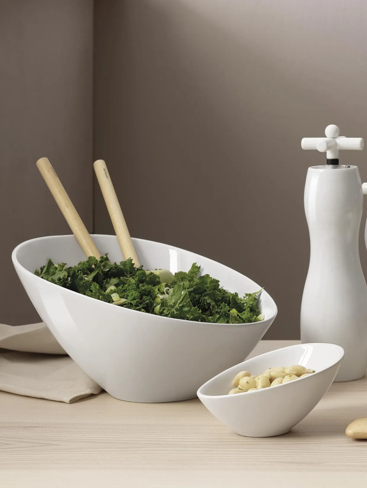 Schräge weiße Schale aus stoßfester Keramik. Die Schale ist sowohl innen als auch außen glänzend weiß und damit die perfekte Bühne für heiße Suppe und frische Salate. Der asymmetrische Rand gibt der Schüssel ein modernes Aussehen und das gewisse Etwas. Mit einer Länge von 15,5 cm ist sie ein echtes Allround-Talent in Ihrem Haushalt!