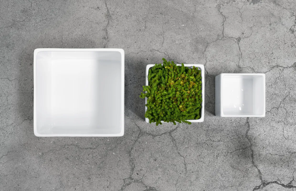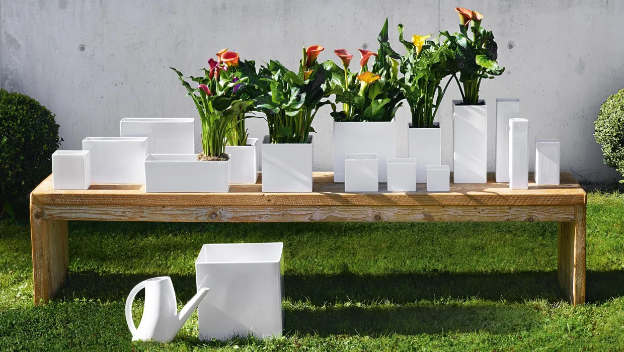 Kleiner Kräuter- und Blumenübertopf aus weißer Keramik. Der Übertopf aus der ASA Selection quadro ist der zweitkleinste der Serie mit den Maßen 12 x 12 cm und ist 12 cm hoch. Die Vasen und Übertöpfe aus der Serie quadro stehen für schlichte Eleganz aus weiß glänzender Keramik. Die quadratische Form eignet sich ideal für Kräuter oder kleine Blumen. Ergänzen Sie diesen auch um weitere quadro Übertöpfe und stellen Sie sich ein kleines Ensemble für Ihre Fensterbank oder den Esstisch zusammen!